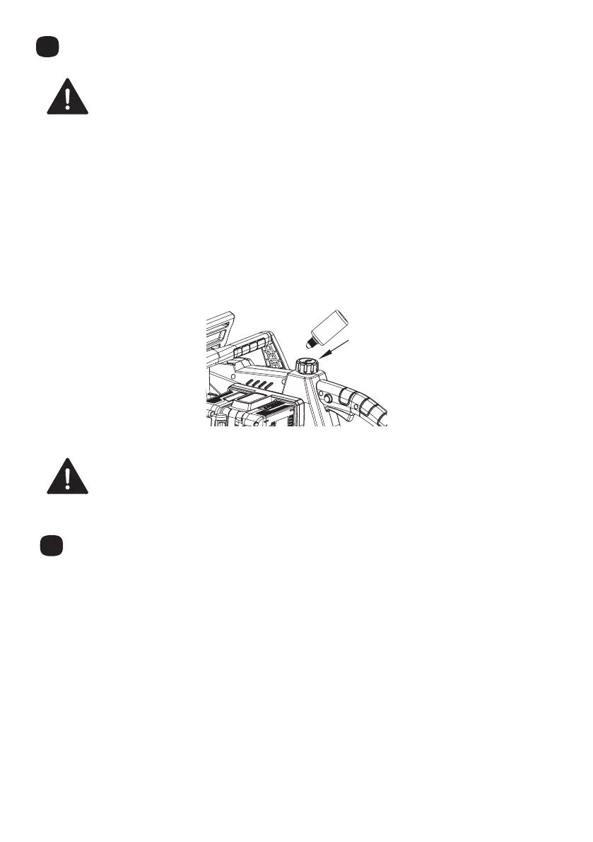 iii. Fill the oil tank with saw chain oil until the oil tank is full..