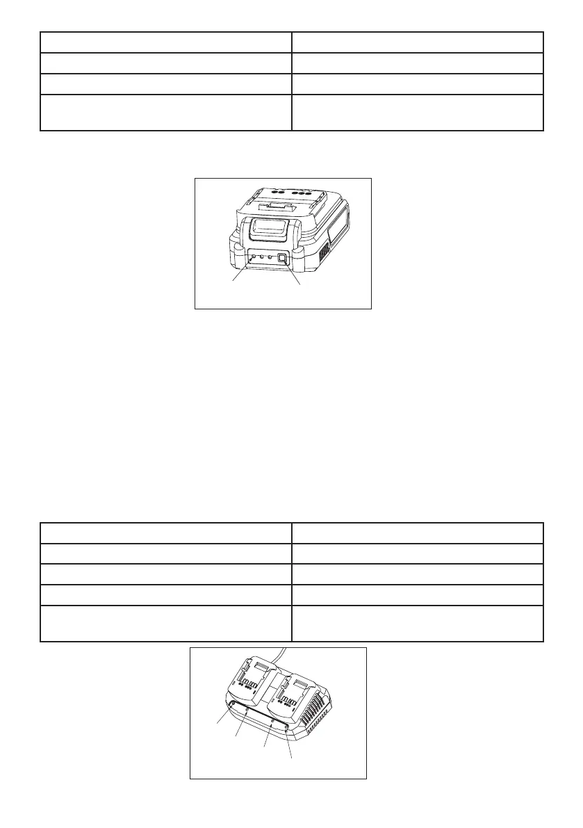3 Green LED continuously lit Battery pack fully charged