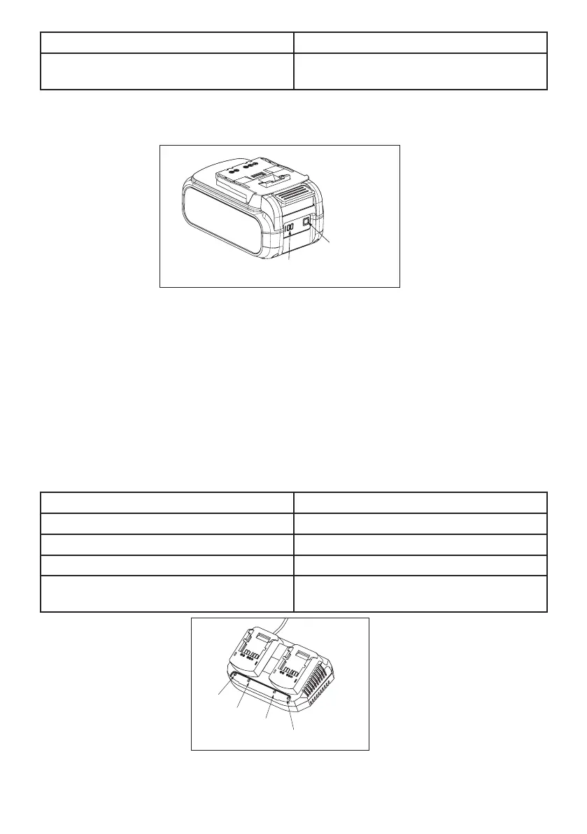 Green LED continuously lit (still) Battery pack fully charged