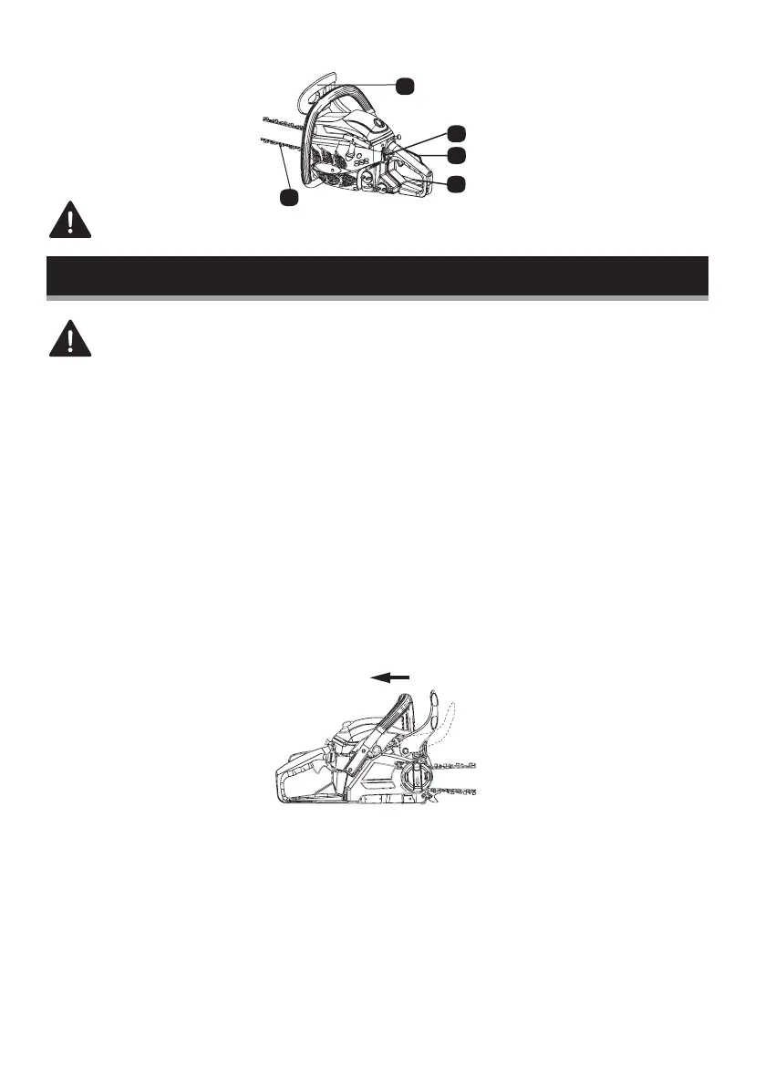 b. The chain brake is ENGAGED (the chain is locked) when the