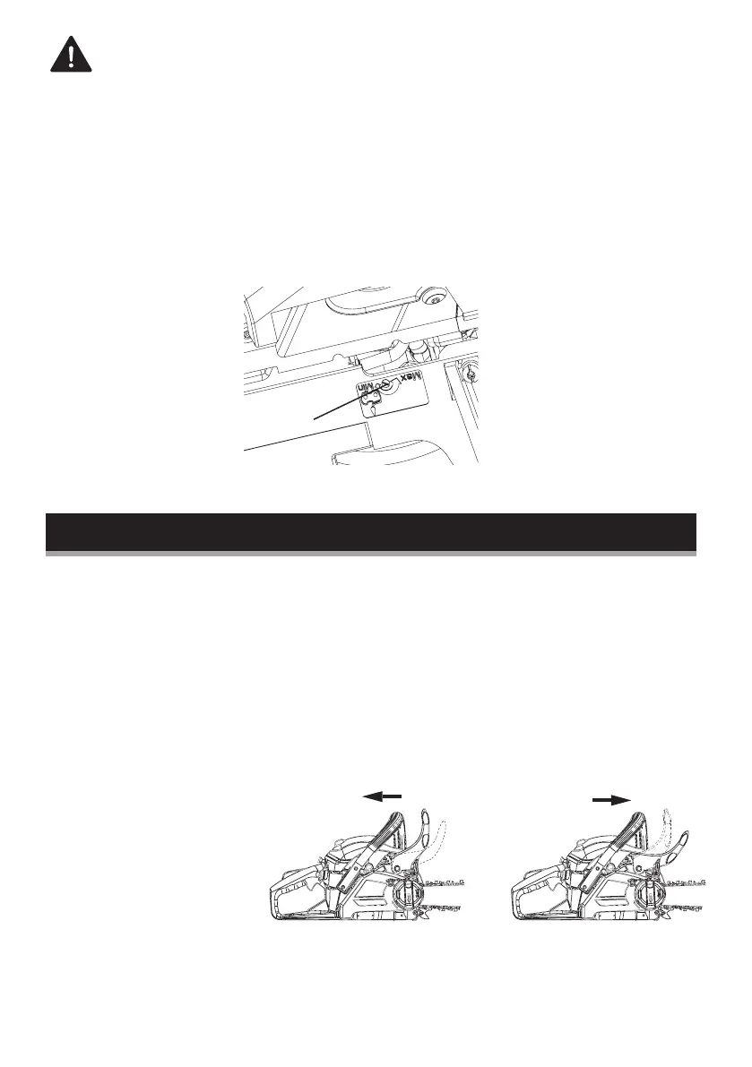 guide bar. To disengage the chain brake, pull it back until it touches