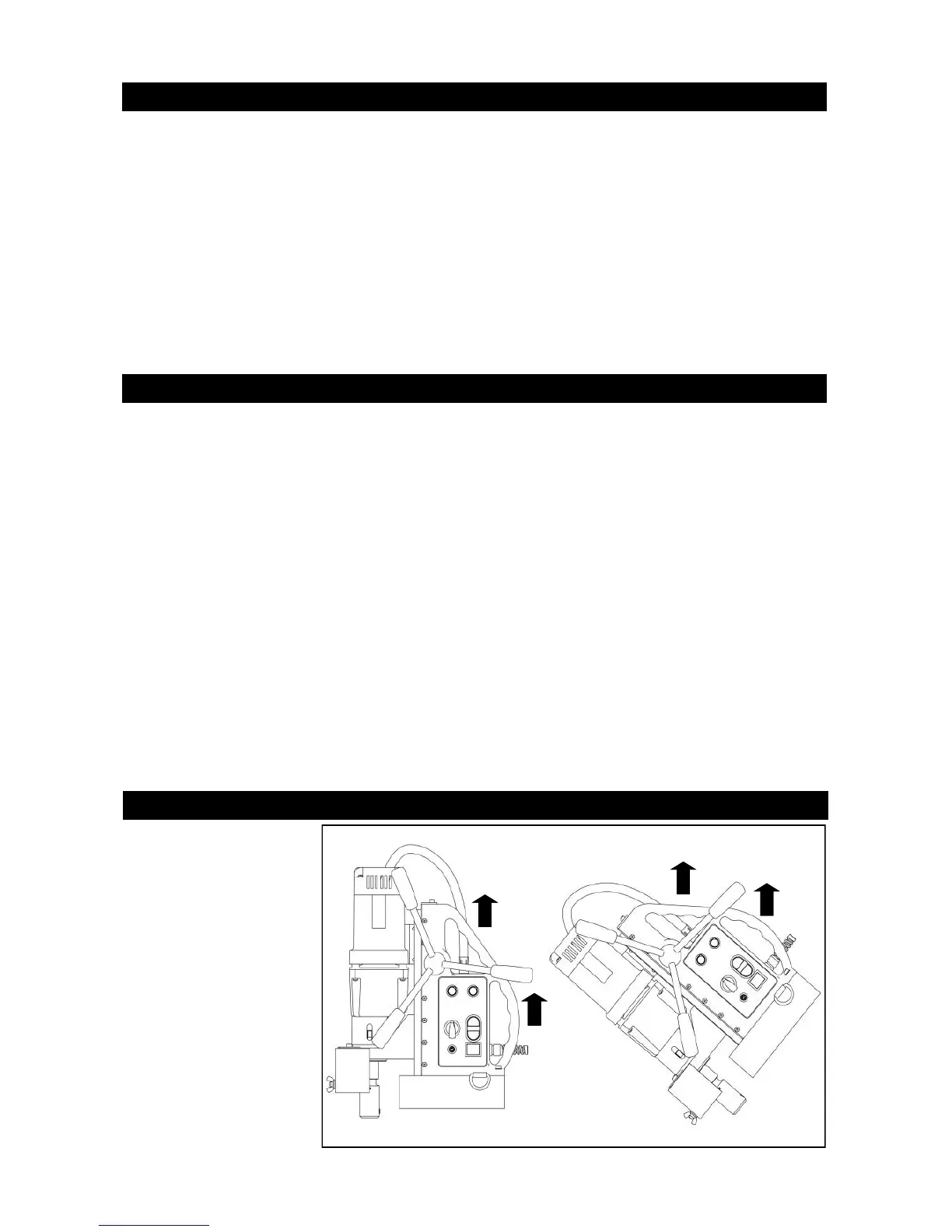 The machine is meant to be held onto a magnetisable surface using its electro-magnetic