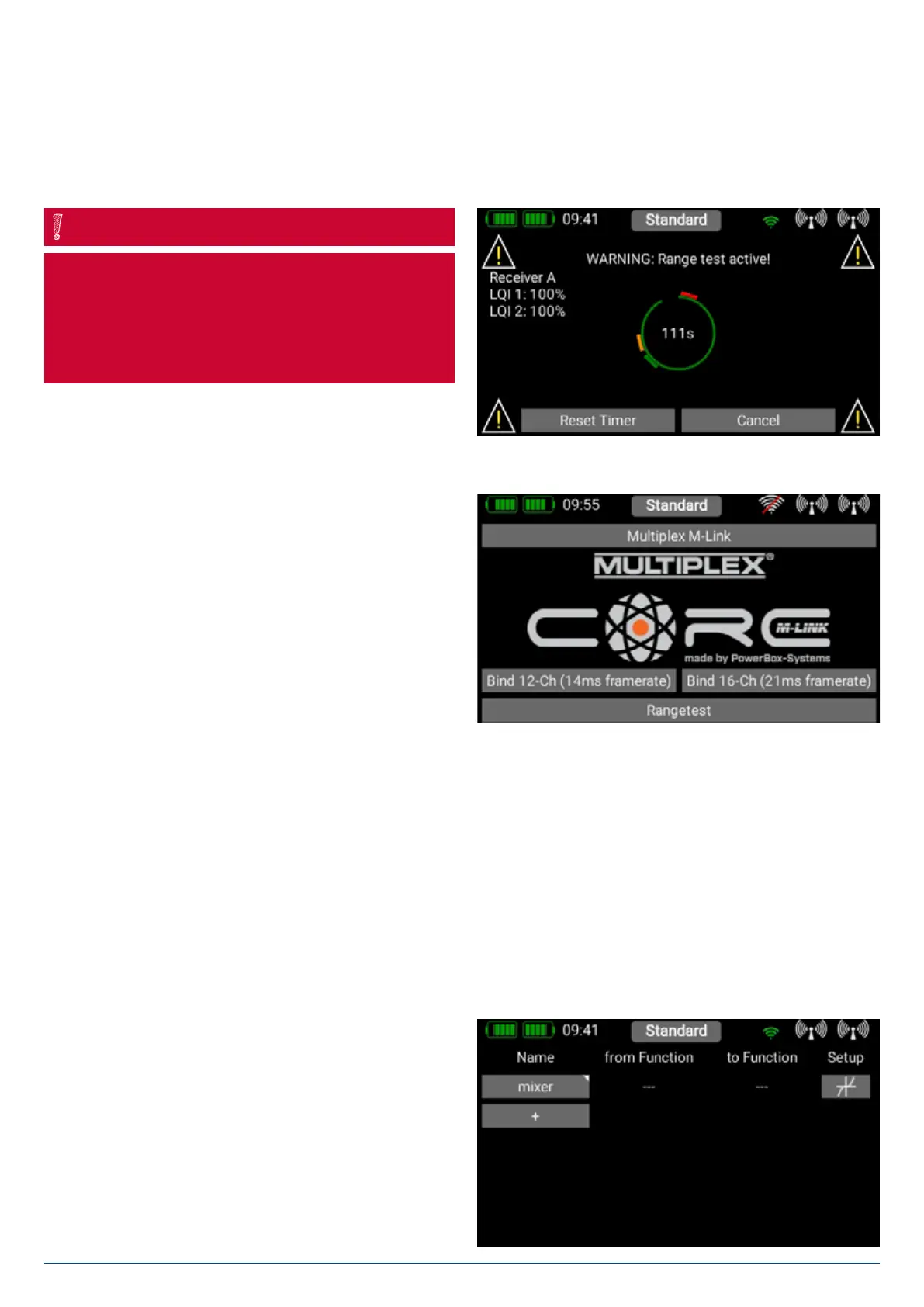 model. This enables you to determine any possible weaknesses in reception in the receivers. In range check mode all the con-