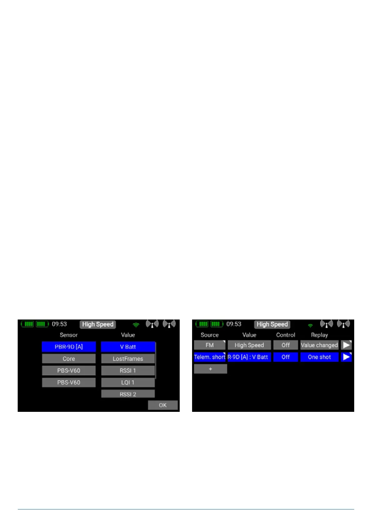 If you want the system to speak free text or a telemetry value, at this point you should select the sensor value which is to act