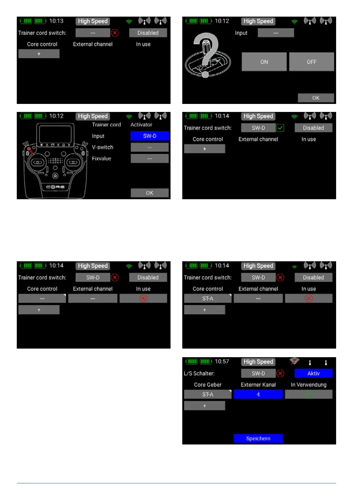 The two transmitter controls are detected automatically simply by moving the sticks or switches. At Core transmitter controls