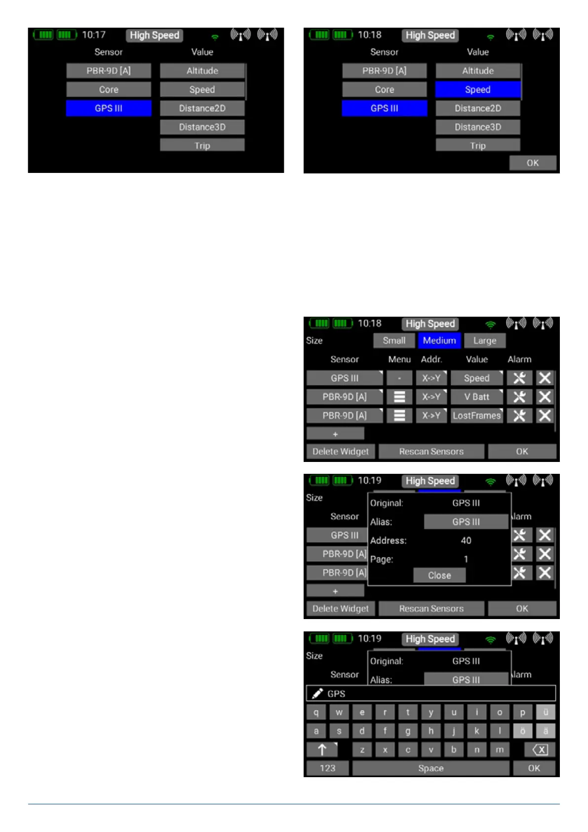 set up each widget to display multiple sensor values, even from different sensors; these values are then displayed in turn by the