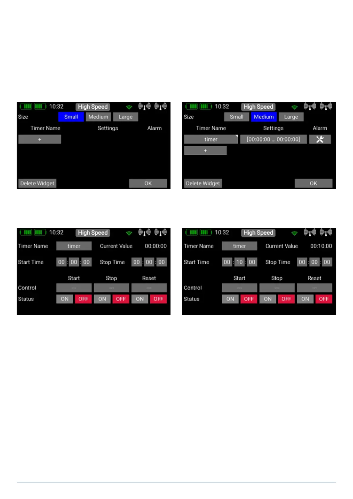 The CORE allows you to set up eight different, independent timers. When you select Timer as widget type, the screen shown
