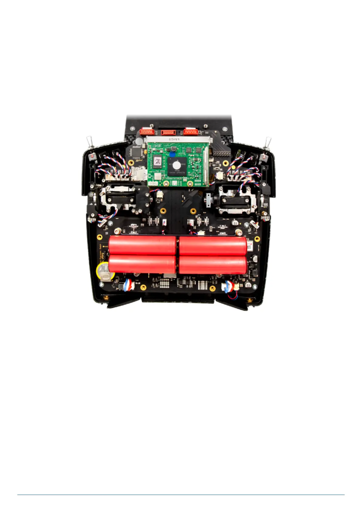 holding the back cover. Don’t remove the back cover yet, as the cables for the switches and proportional controls in the cover
