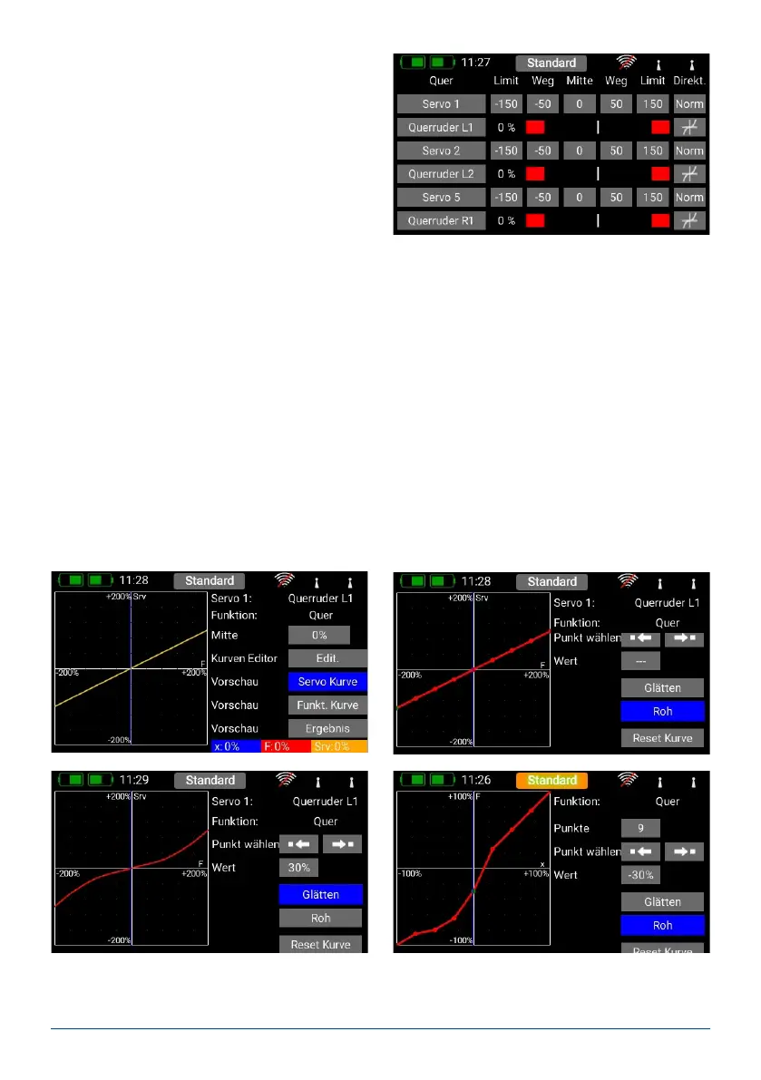 g) Curve editor: the travel of each servo can be adjusted using a 9-point curve to match the mechanical installa-