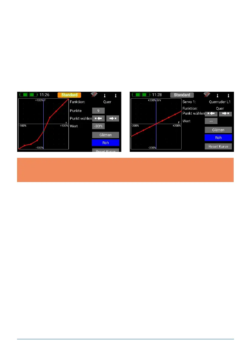 Once you have set the desired curve, return to the Servo Curve menu, where you will nd three Preview buttons.