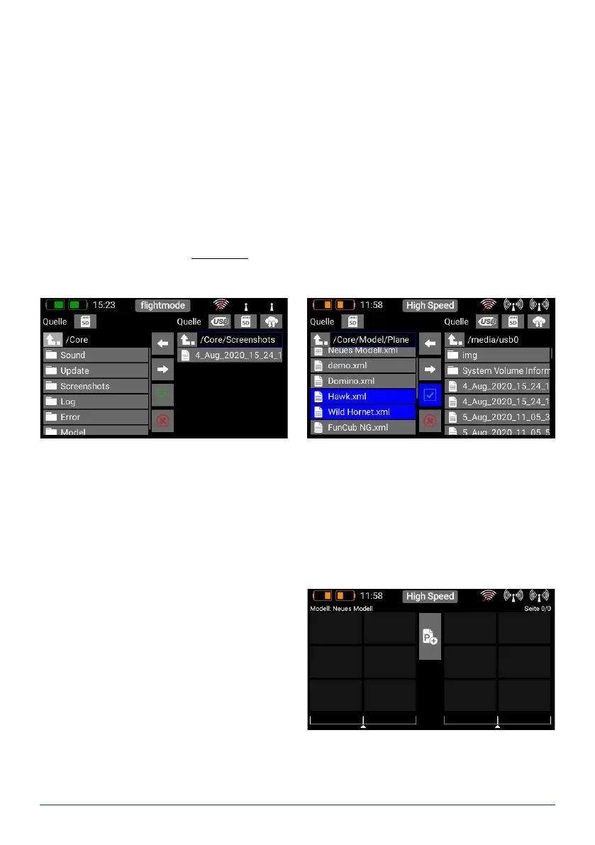 The File Manager enables you to exchange les on the SD card in the CORE transmitter with les stored on a USB