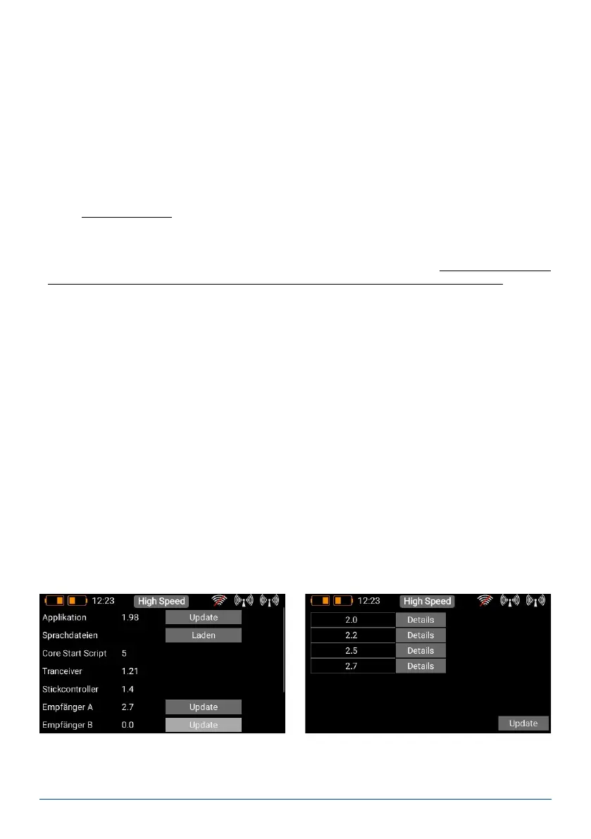 Pressing Update opens a window, and the transmitter invites you to carry out a restart. Do not switch the trans-