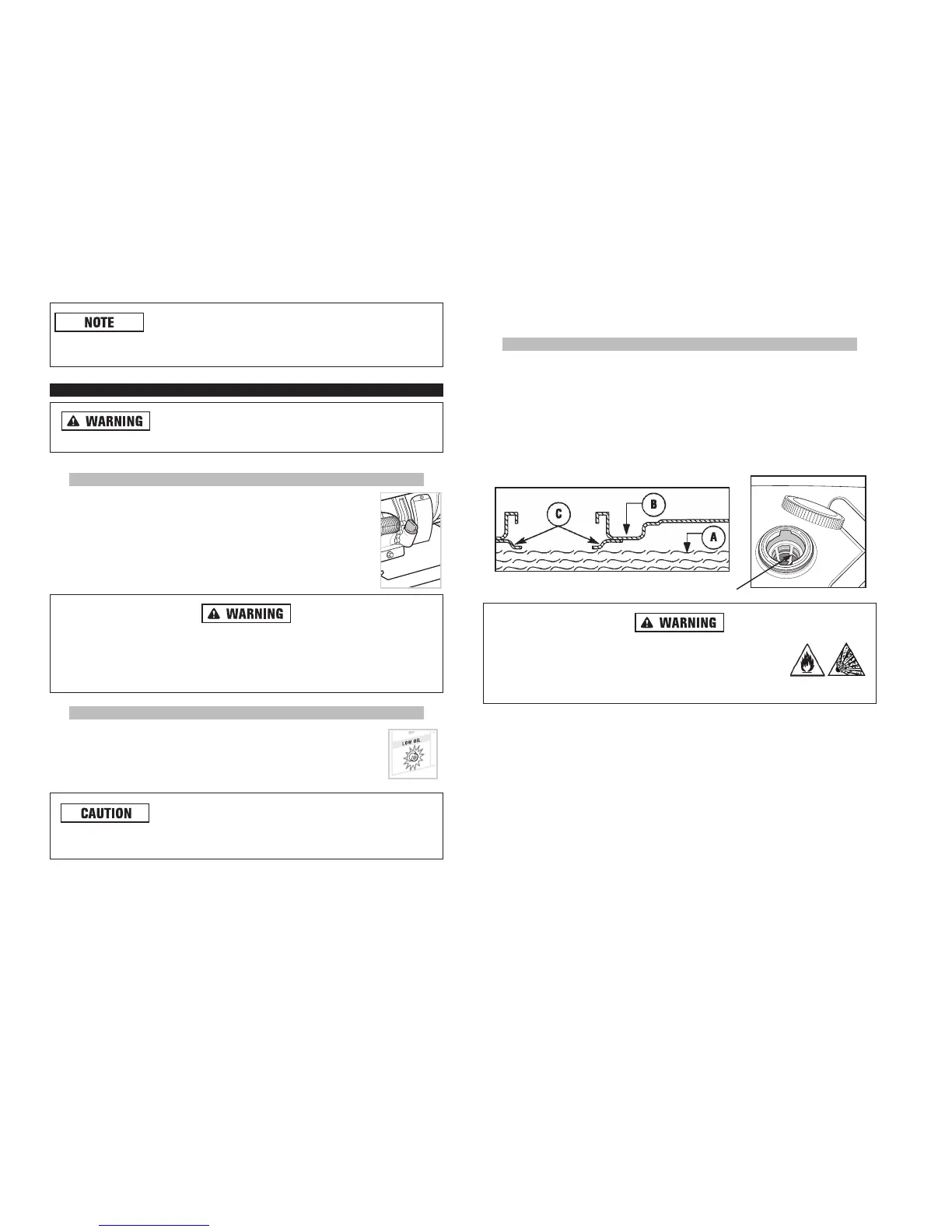 • Keep petrol away from sparks, open flames, pilot lights, heat and other ignition