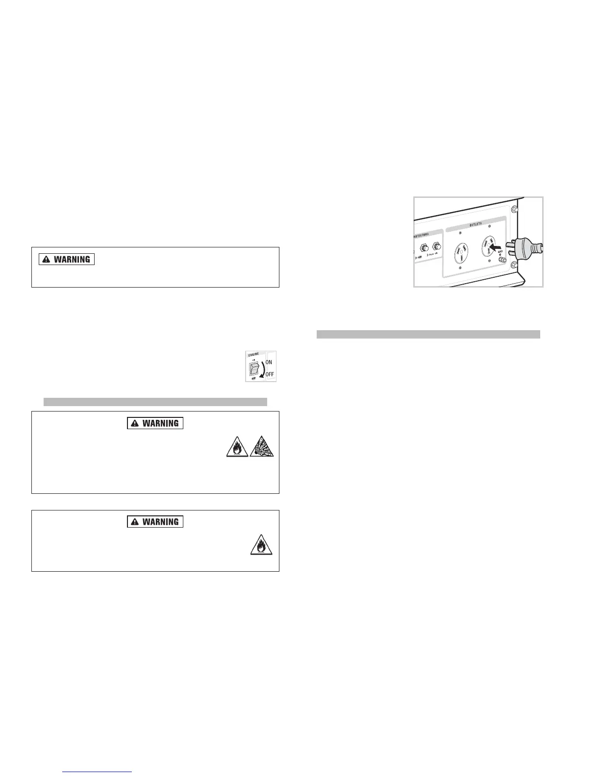 • NEVER start or stop generator engine with electrical devices plugged in and/or