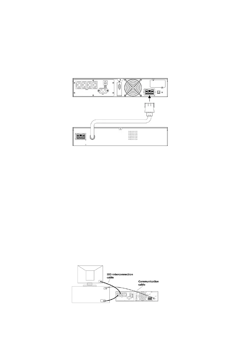 Ensure that the UPS is disconnected from mains and loads while connecting the External