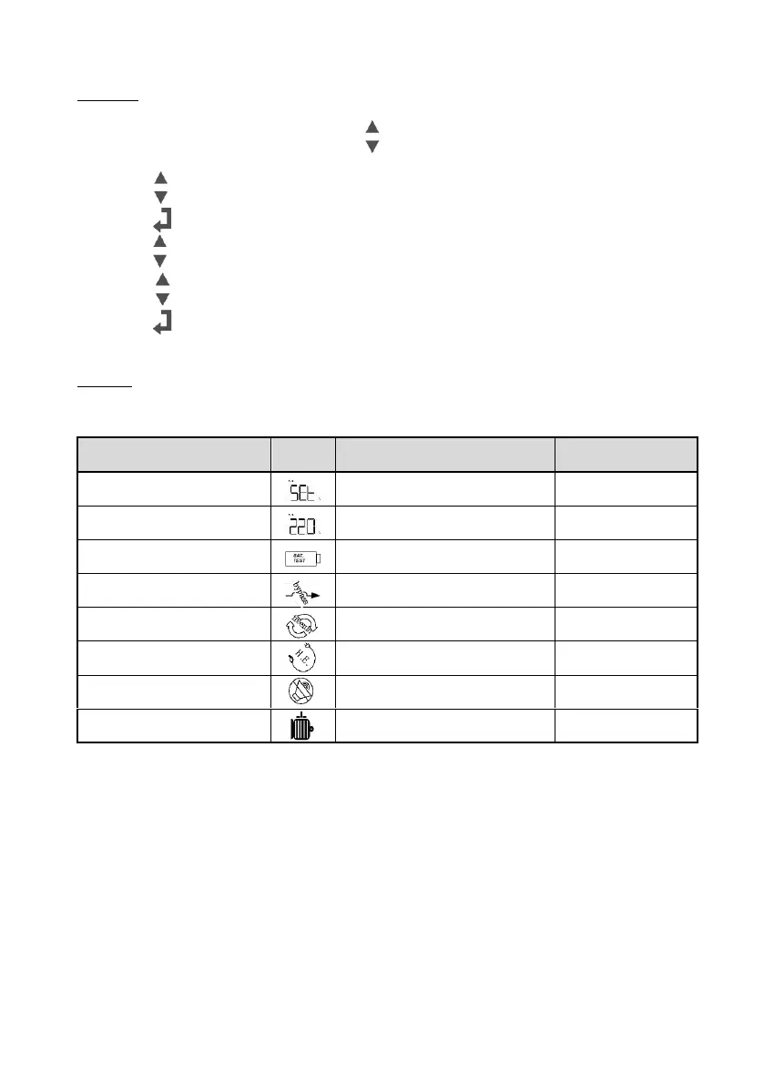 Press the “ ” button to switch through the parameters;