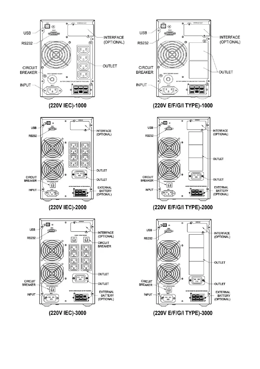 Fig.3 Rear panel of UPS 1KVA to 3KVA (Tower Type)