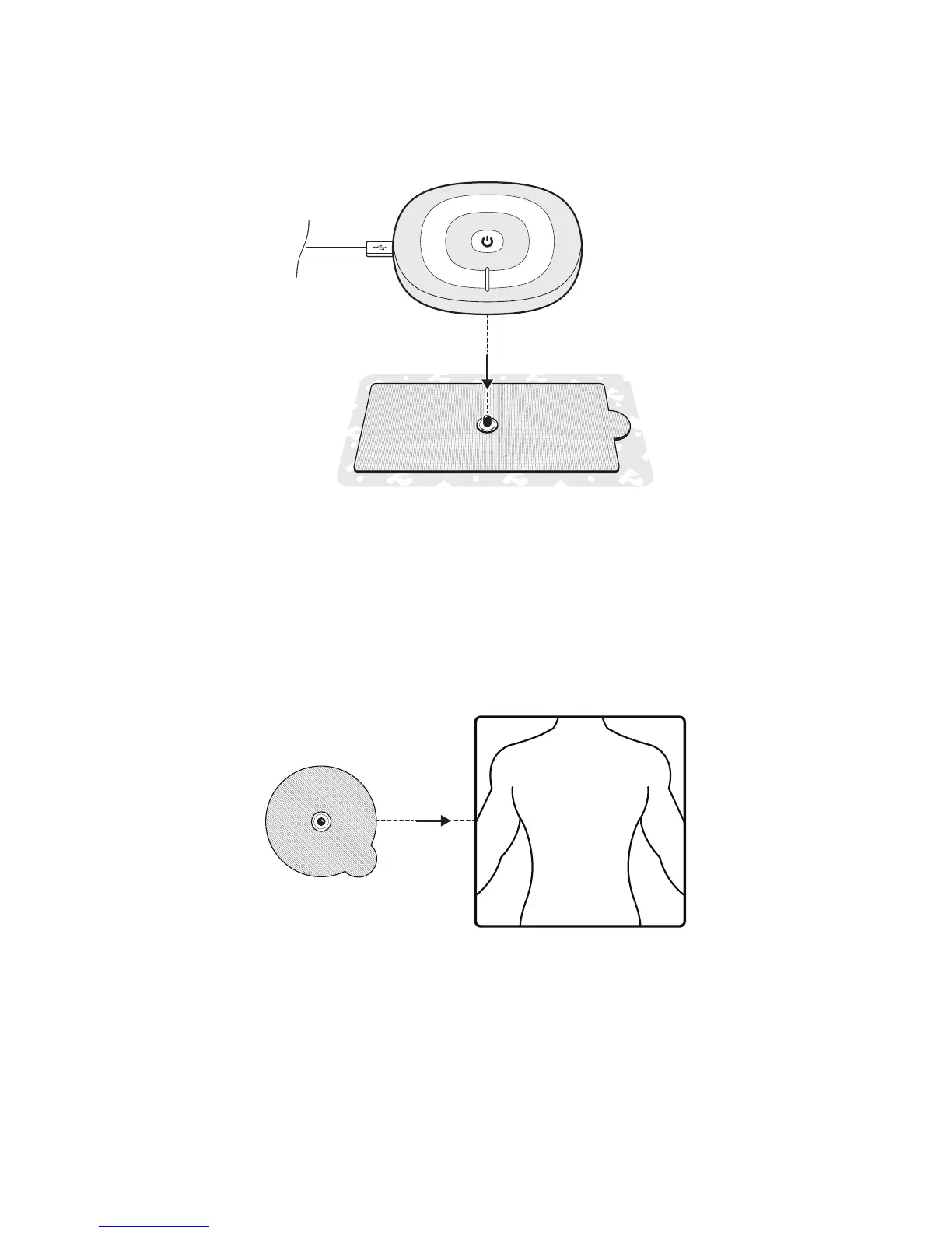 2) Snap on PowerDot to the rectangular electrode pad while the