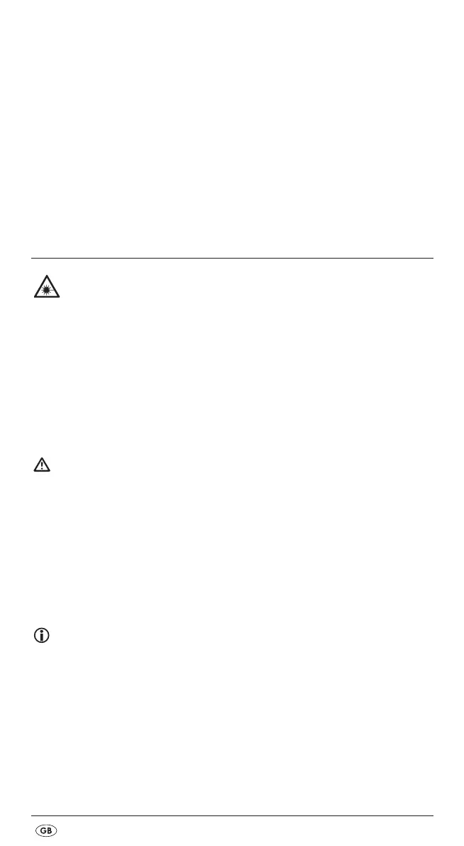 The appliance contains a Class 2 laser. NEVER direct the laser beam at