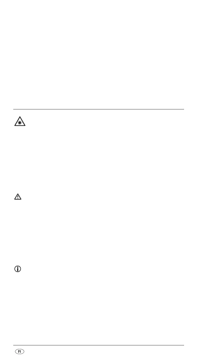 Laite sisältää luokan 2 laserin. Älä koskaan suuntaa laseria henkilöitä