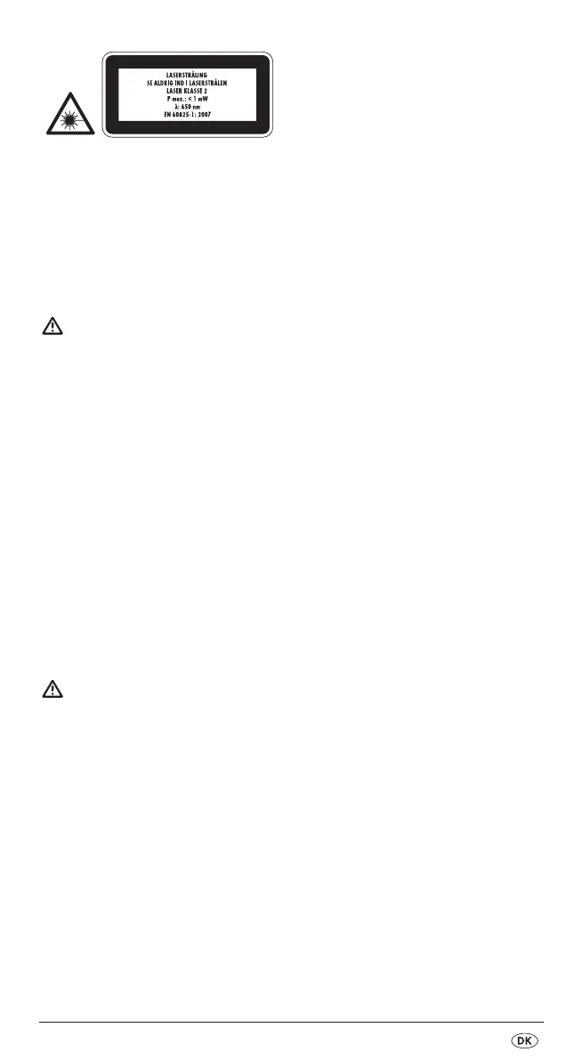 • Ret ikke laserstrålen mod kraftigt reflekterende materialer. Fare på grund