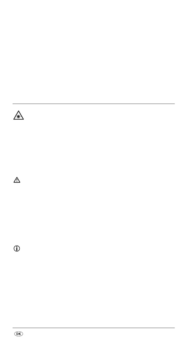 personer eller dyr. Kig aldrig direkte ind i laseren. Laseren kan fremkalde