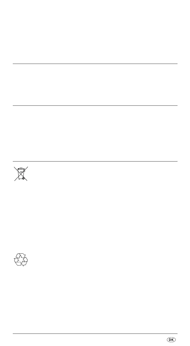 • Opbevar apparatet et tørt og frostfrit sted.