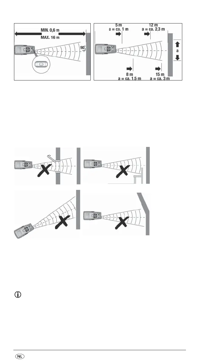Zorg er daarom voor dat de multimeetdetector altijd op een vlak oppervlak