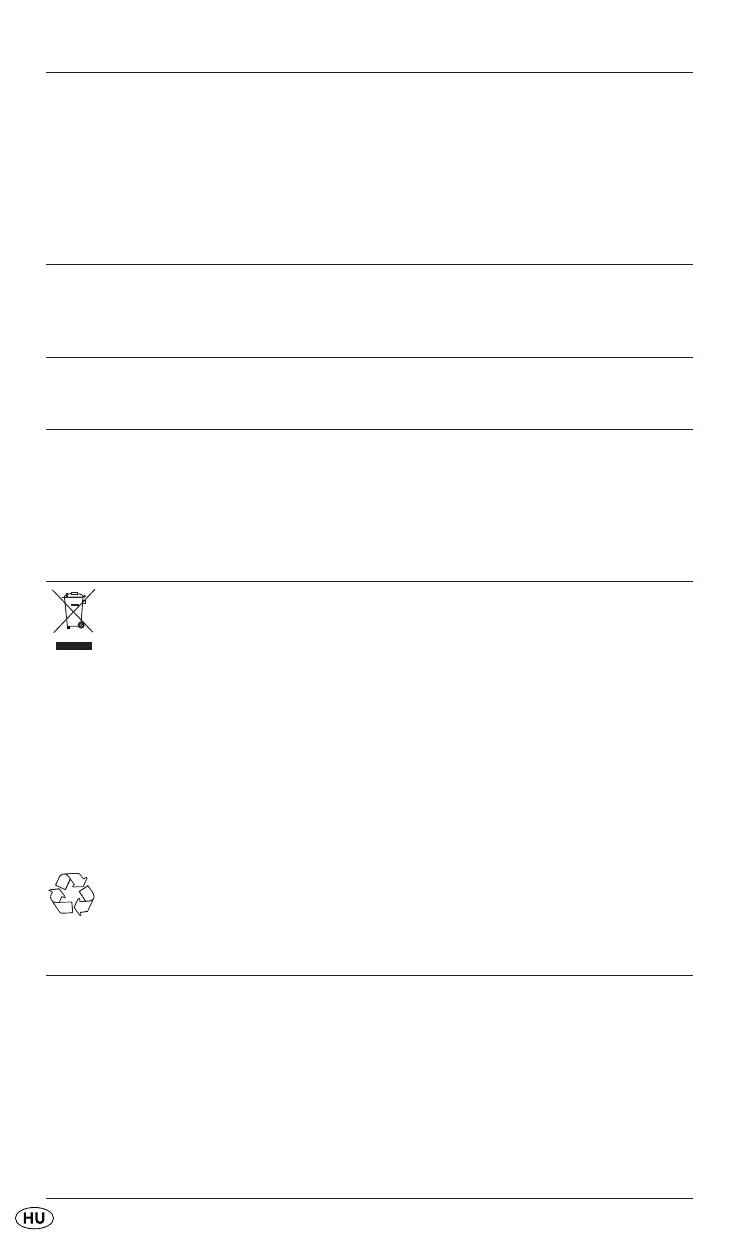 • Vegye ki az elemet az elemrekeszből, ha hosszabb ideig nem használja a készüléket.