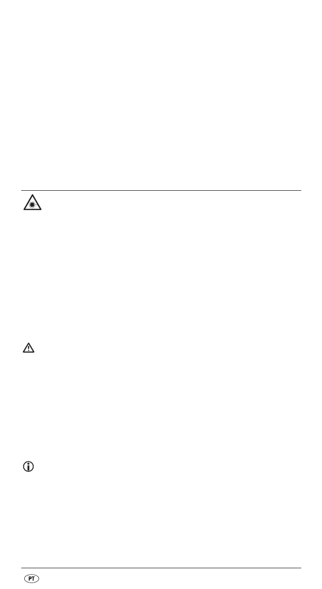 pessoas ou animais. Nunca olhe directamente para o laser. O laser pode