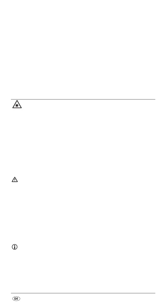 Personen oder Tiere. Blicken Sie nie direkt in den Strahl. Der Laser kann