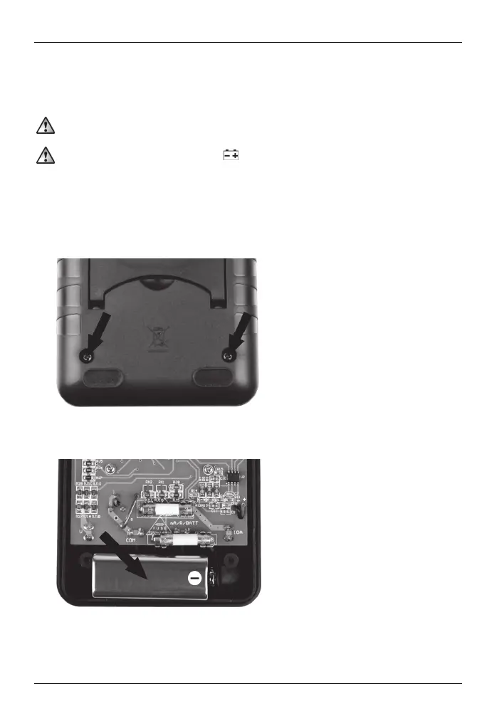 A multiméter 9V-os szárazelemmel működik. Az elem behelyezéséhez, illetve cseréjéhez a