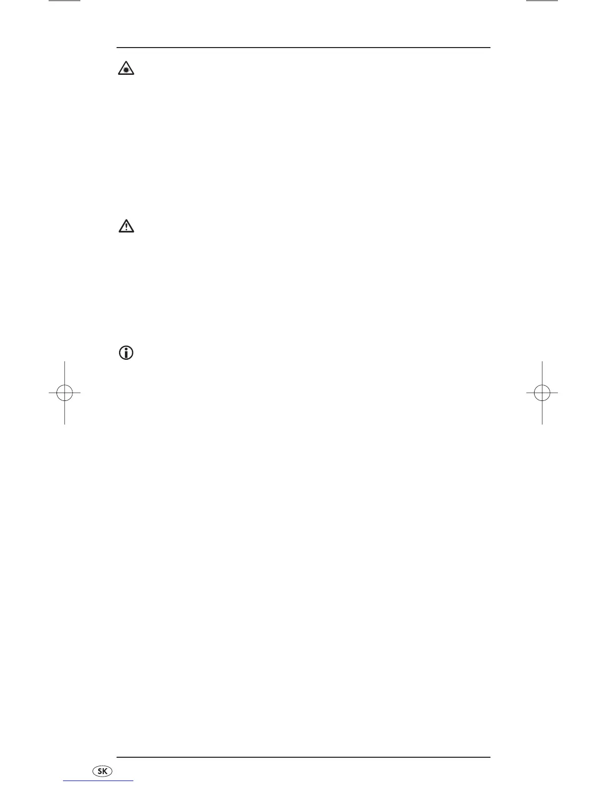 Prístroj obsahuje laser triedy 2. Nesmerujete laserom na ľudí ani na zvieratá.