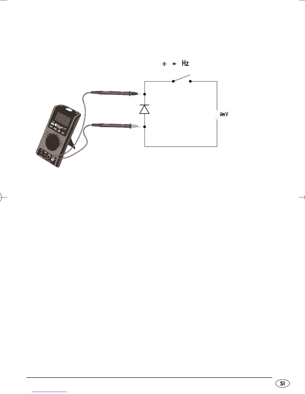 • Preskusni konici povežite z merjencem. Pri tem rdeči merilni vod povežite