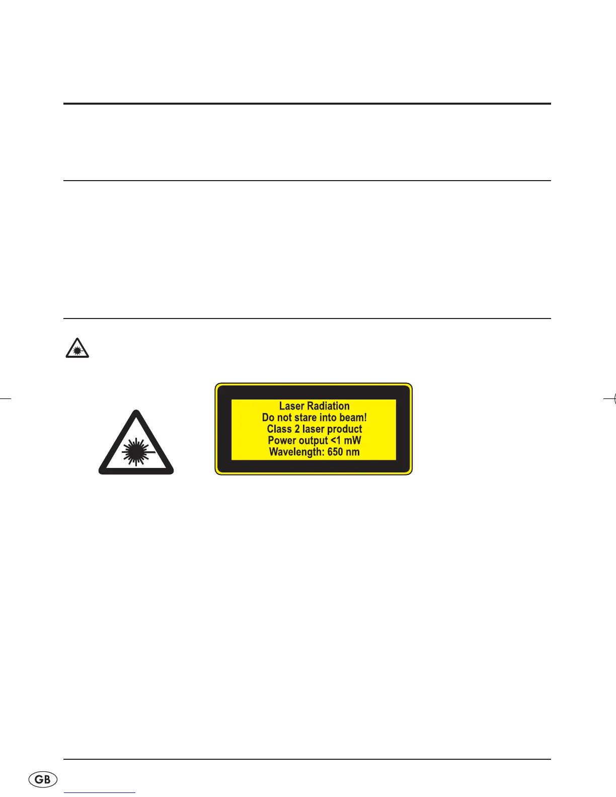 • Do NOT direct the laser beam at strongly reflective materials, such