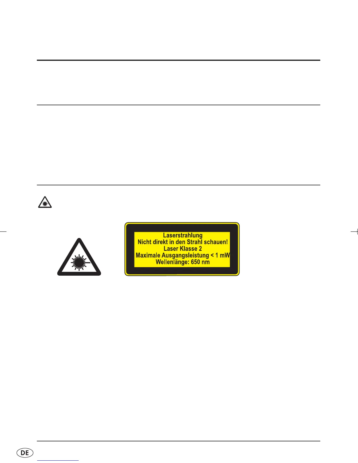 Laser nie auf Personen oder Tiere. Schauen Sie niemals direkt
