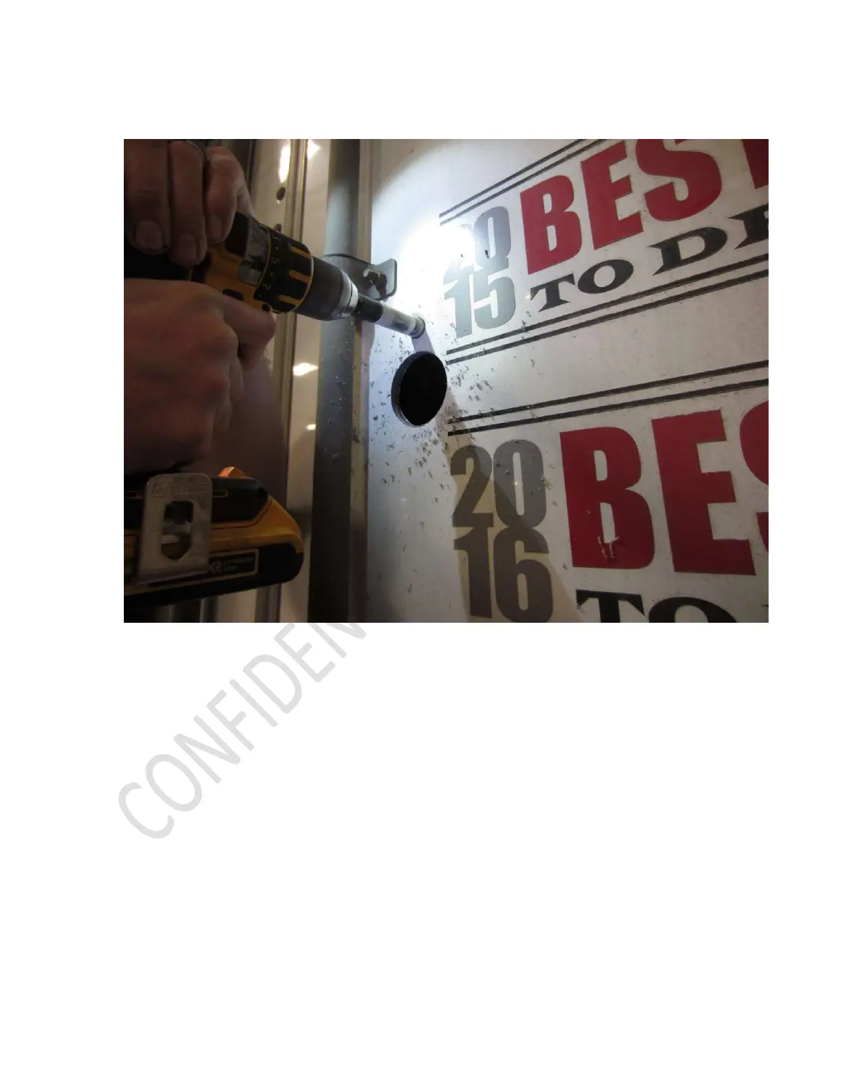 23. Drill ¾” hole for positioning dowel at marked location on door.