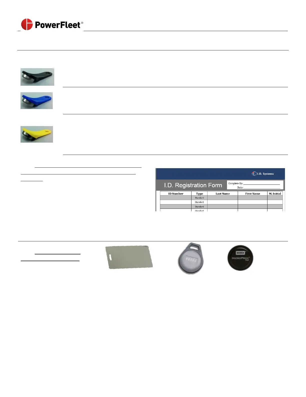 “Registered ID” mode) by presenting the access IDs to the desktop Access ID Reader. Refer to the PowerFleet Vision Pro