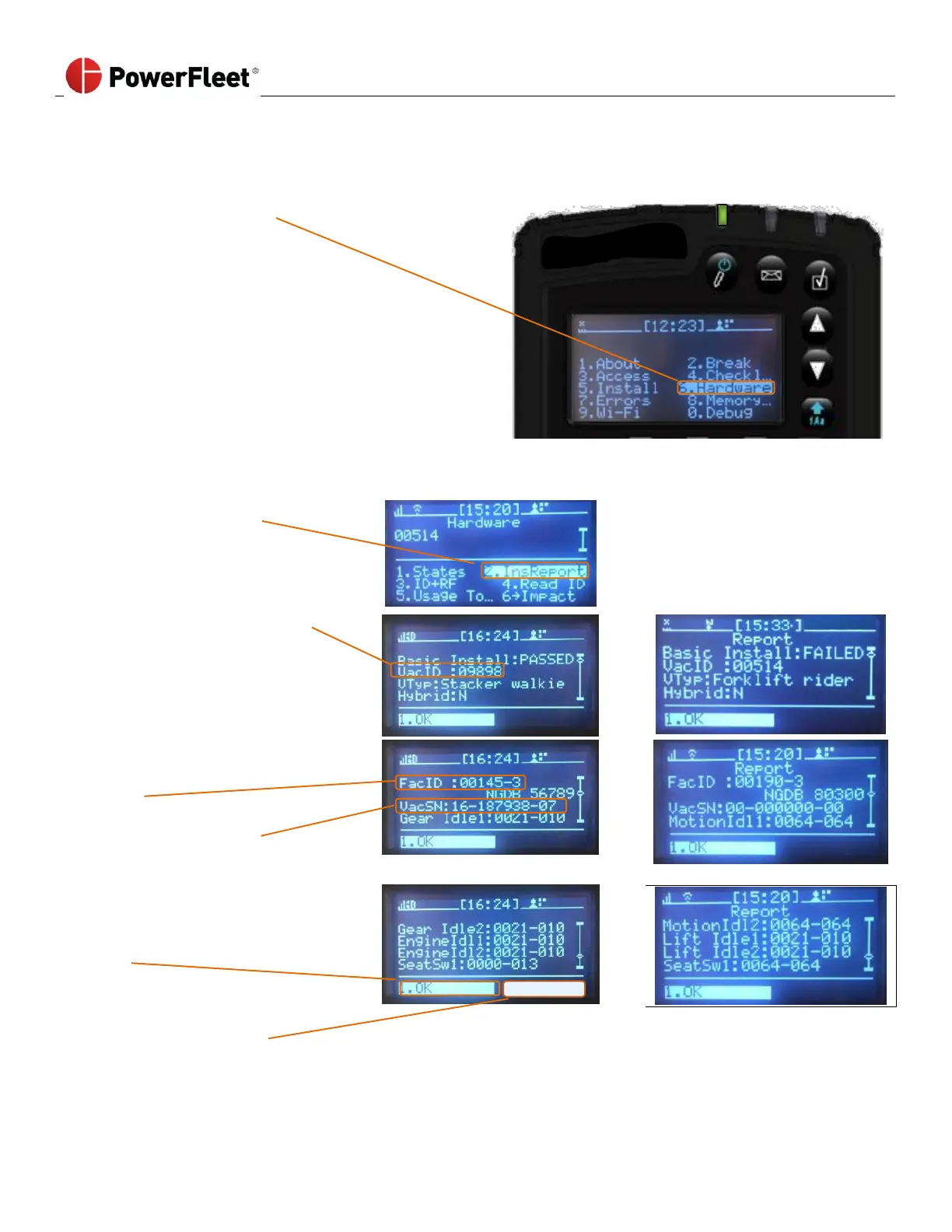 Every time the BASIC or SENSOR wizard is completed, from the VAC menu screen, select HARDWARE. Select InsReport.