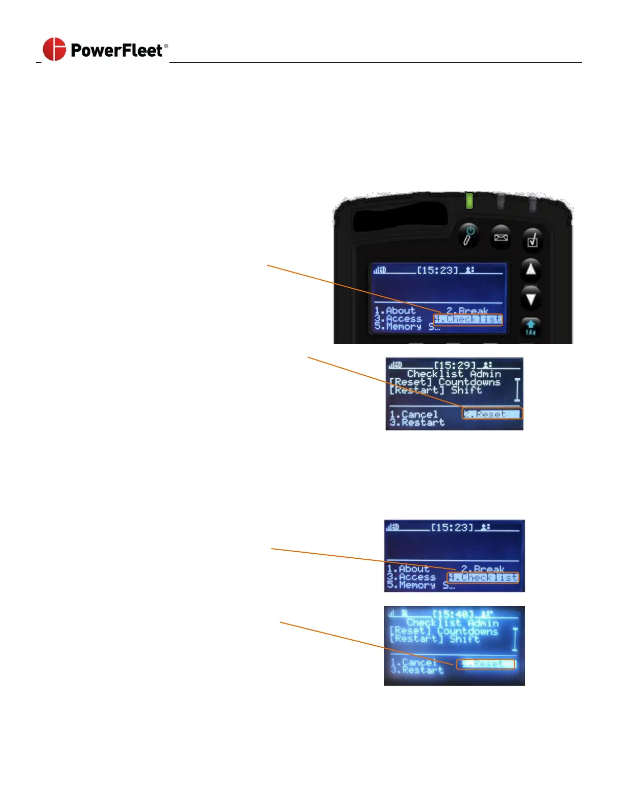 On the “Checklist Admin” sub-menu, select RESET.