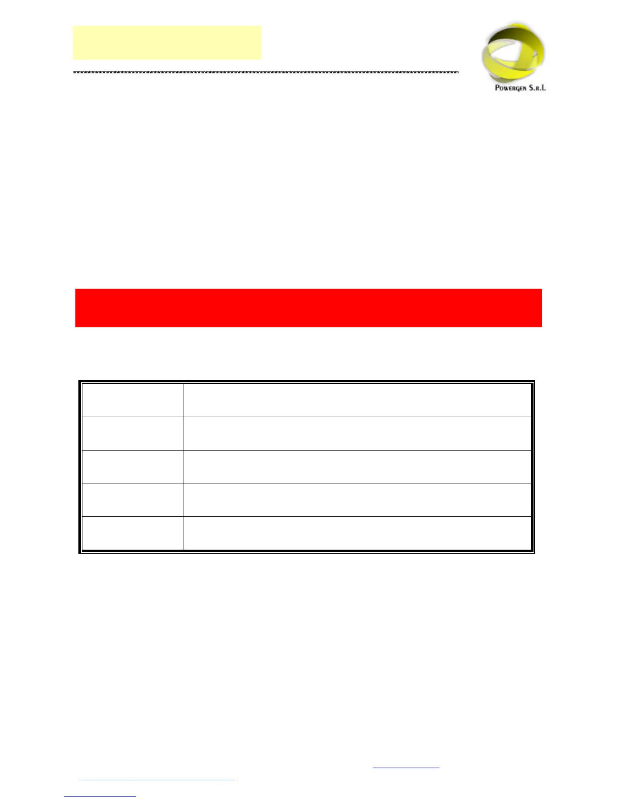 The information contained in the present manual is Powergen s.r.l.’s property. Powergen s.r.l. reserves the