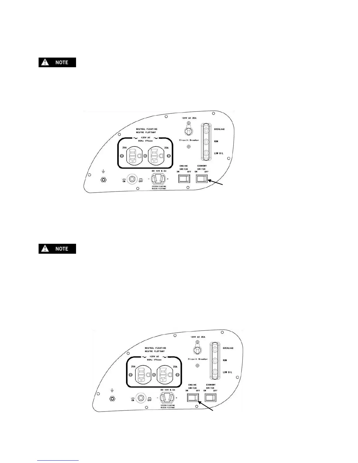 When high electrical loads are connected simultaneously, turn the economy switch to the