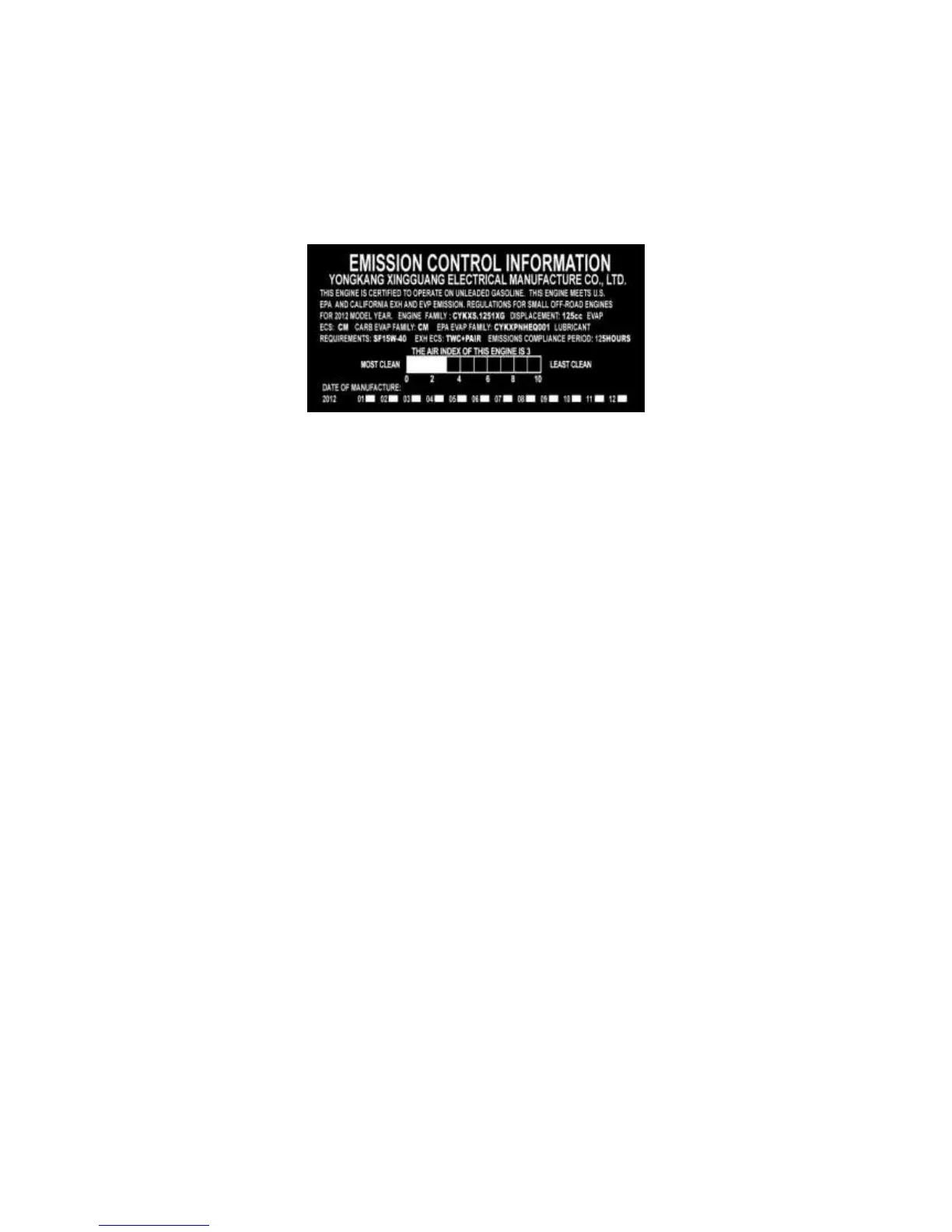 CARB requires that an air quality index label be attached to every certified engine showing the engine emission