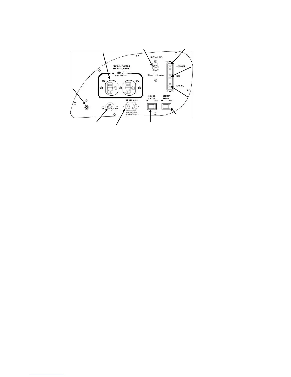 Powerhouse 2000Wi - Control Panel Overview; AC Outlets and Circuit Breakers; DC Output and Control Switches; Indicator Lights