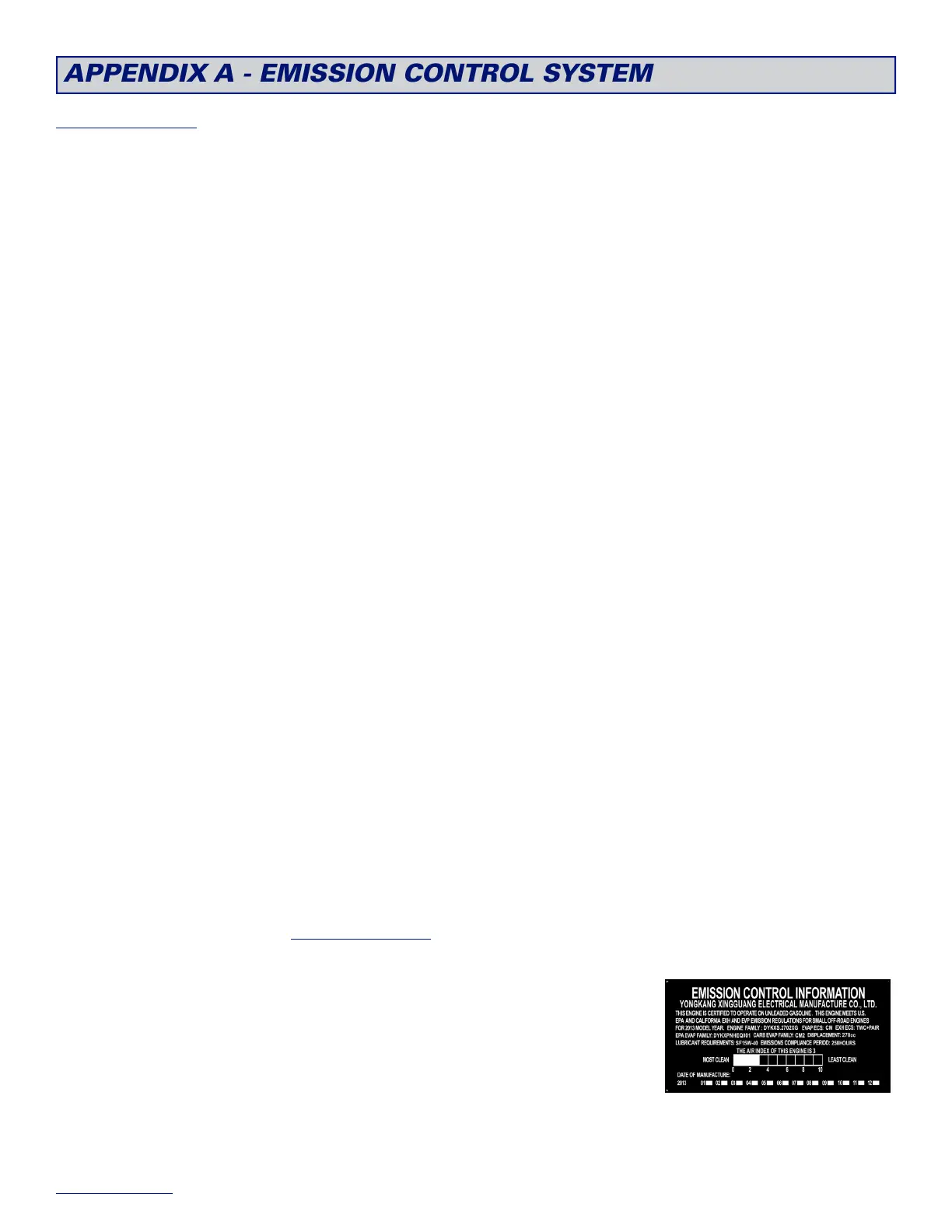 APPENDIX A - EMISSION CONTROL SYSTEM