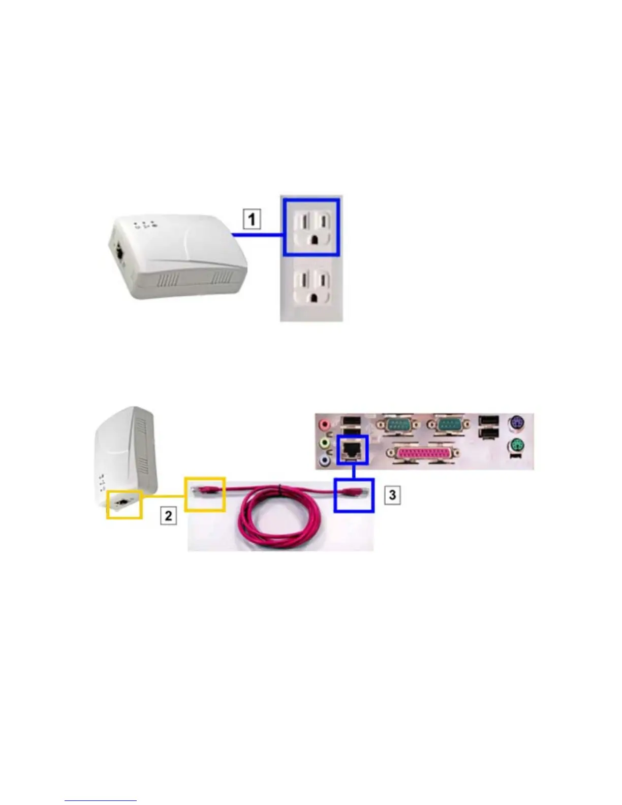 2. Use Ethernet Cable to link to your computer, one RJ-45 connect to the powerline Ethernet port
