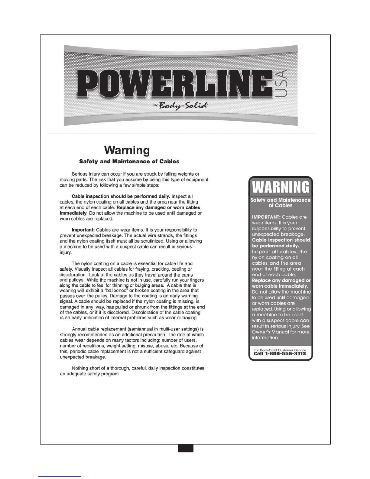 Powerline P2 X - Warning; Safety and Maintenance of Cables