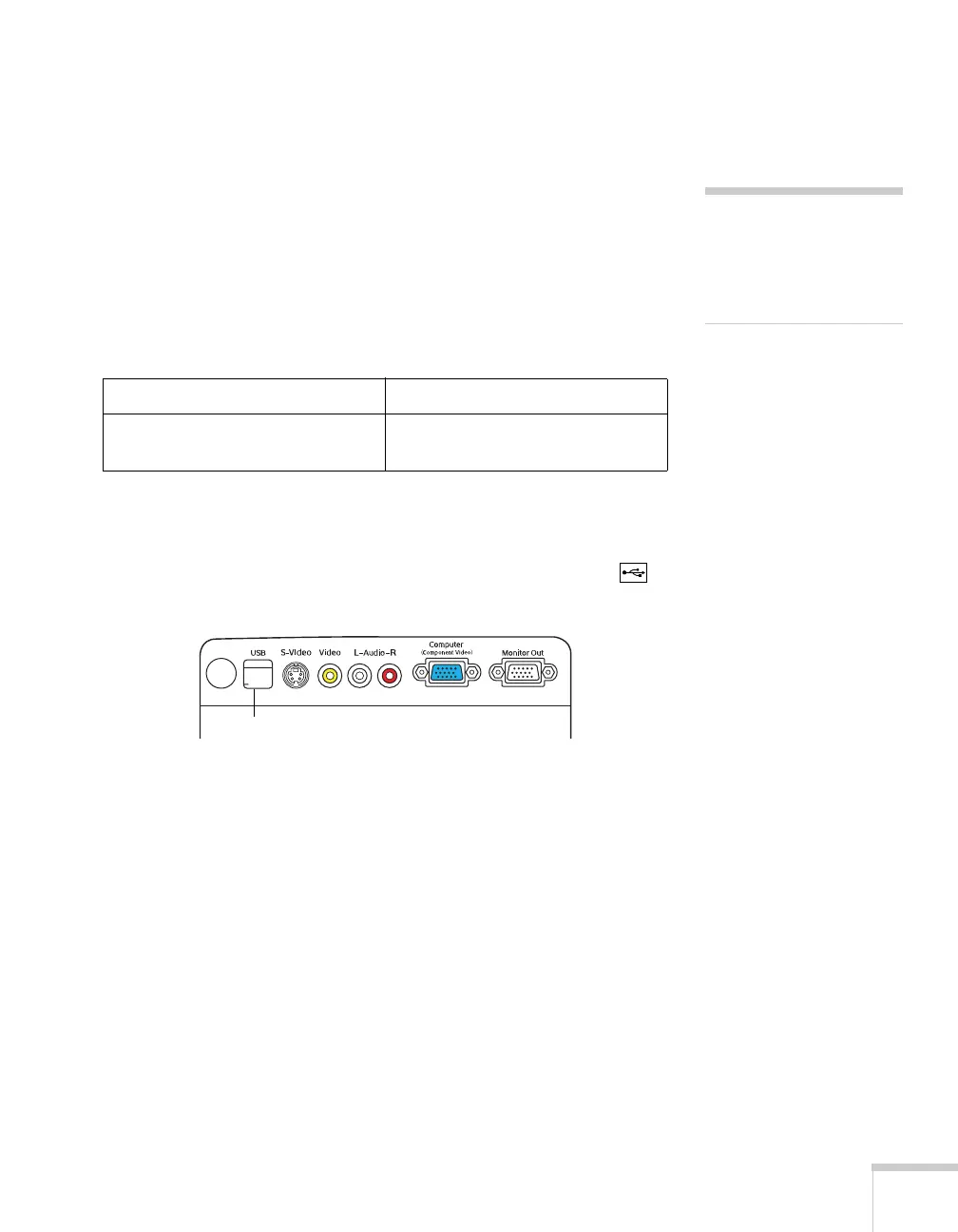 2. Connect the square end of the USB cable to the projector’s
