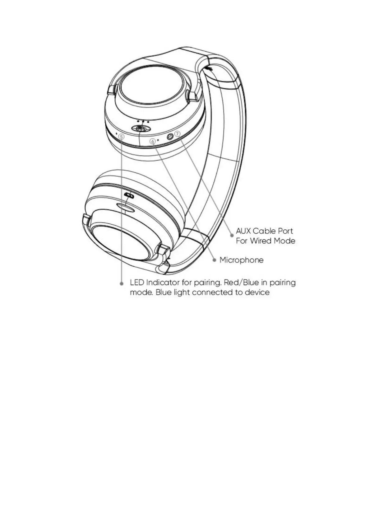 (5) Indicateur LED pour l’appariement. Rouge/Bleu en mode appariement, Lumière bleue – connecté à l’appareil