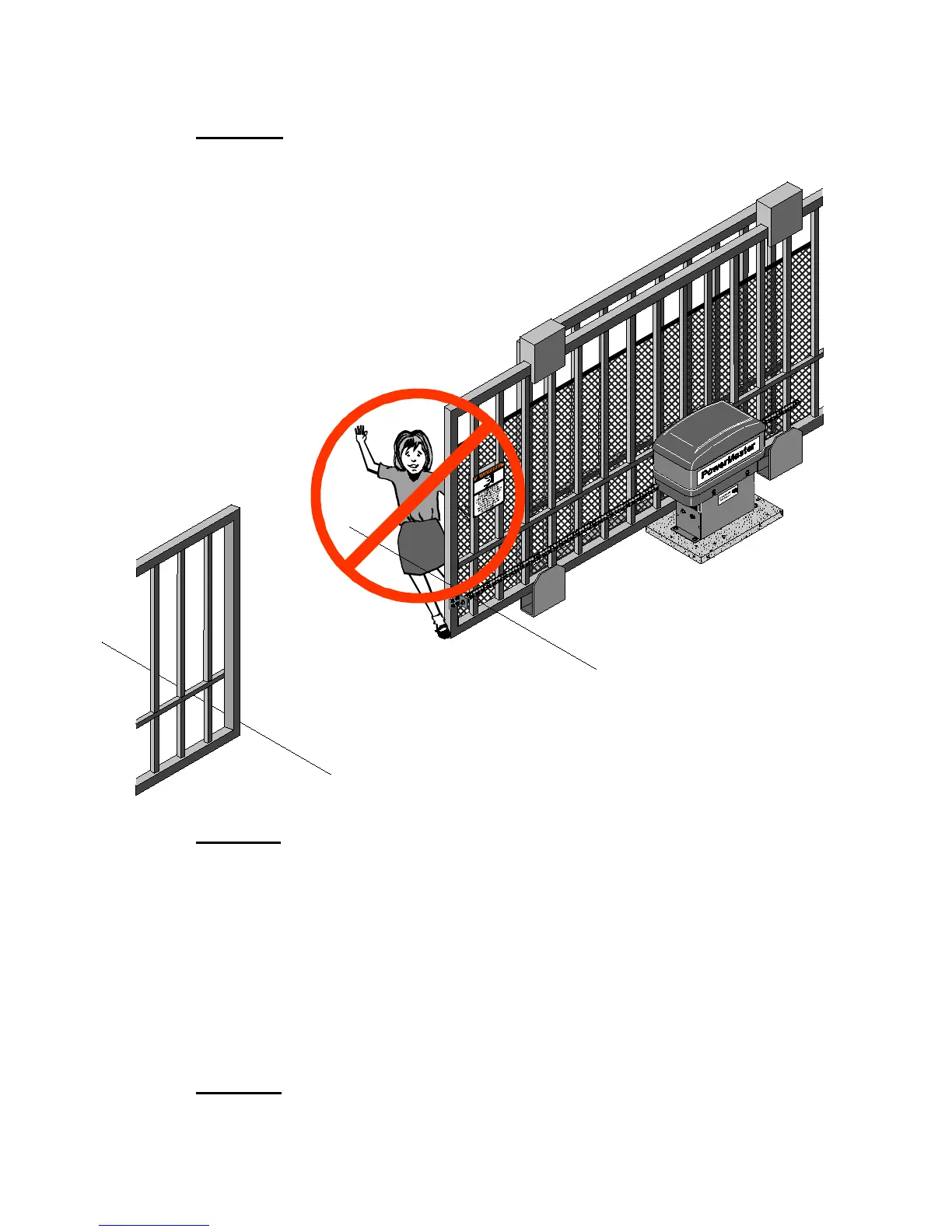 ▲ 3. DO NOT allow children to play near your gate, or to operate the